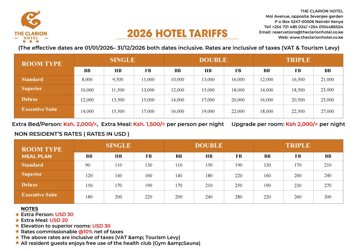 Sorai BVerified When everything Just Stands Out Loved the experience. Exquisite services. Your services have surpassed all my past hotel experiences The food, the decor, the functioning amenities, the promptness of staff, etc Simply the bestPosted on nduta MVerified A nice place to stay at in Nairobi cbd The rooms were clean , quite and beautiful.its in the Nairobi CBD.good amenities and welcoming staff.i would highly recommendPosted on Wanderer787243Verified Serene and accessible to the CBD A wonderful place ,very friendly and eager to help staff . A continental cuisine like none other . Don't also forget to sample their coffee at The Cafe Clarion .Serene yet quite accessible to the CBD. Recommended for business and solo travelers .Posted on Hevlynne83Verified Lovely stay Lovely stay for two nights. Staff very helpful and friendly. Comfortable room. Service in the restaurant was very good and the food good quality if a little lacking in choice.Only thing missing was a hairdryer as backpacking doesn't allow space to take your own.Posted on Susan EVerified Welcome to Clarion Hotel, Nairobi Great location, you get there easily and there’s secure car parking. Clarion staff are courteous and professional, and the rooms are like a second home. The food is fresh and reasonably priced, while the tasty sumptuous breakfast gives you a wonderful opening for the day ahead…Posted on Darrell JVerified 5 star accommodations, without the big price. I loved this place. Rooms were nice and well worh the money. The restaurant food is delicious. I only ate there for dinner. Last but not least, the staff were the best. They were always looking to help and went above and beyond to be of service to me.Posted on Naphtaly OVerified Great Experience! Everything is just perfect with great customer service staff. Great experience. Clean rooms, good and fresh food, friendly front office team. The location is also very convenient and safe even for Travellers.Posted on Tripadvisor rating score: 3.5 of 5,